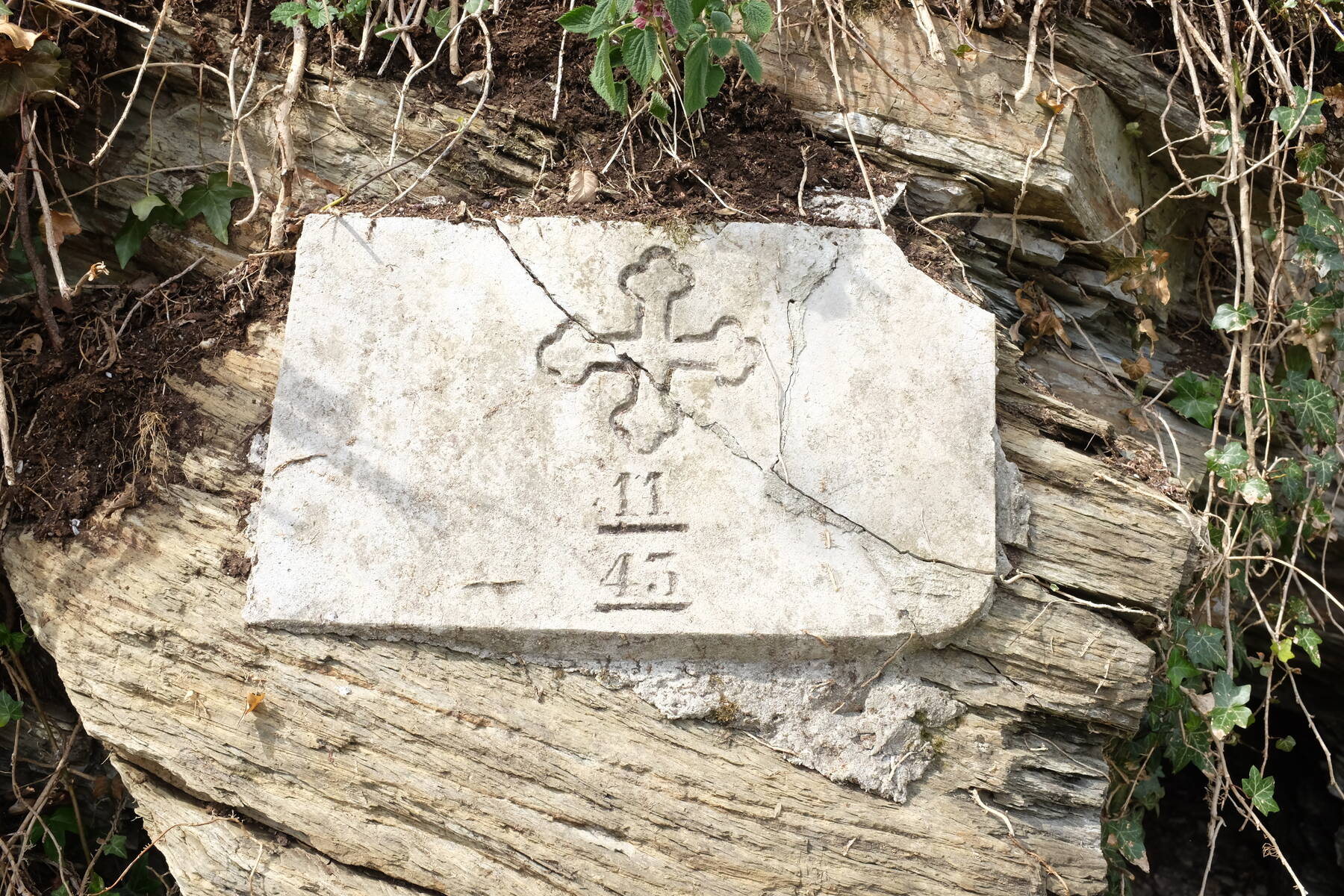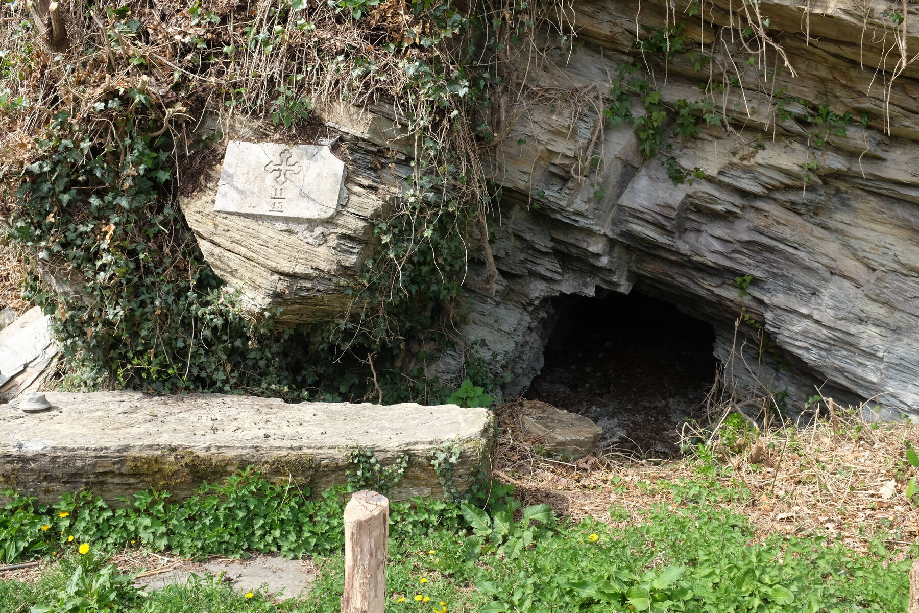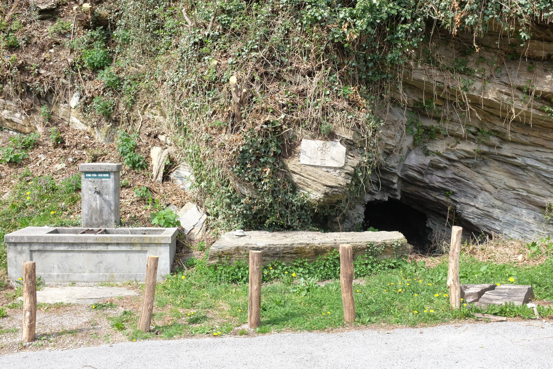 Ob koritu je položena skala, na kateri je mogoče sedeti. Nad skalo je kamnita plošča s križem in številkama 11 in 43. Zadaj je še kaverna.